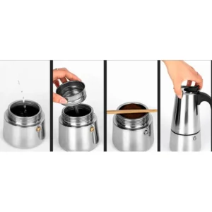 Với kích thước nhỏ gọn, ấm pha cà phê Moka pot thích hợp cho gia đình 2-3 người. Ấm có thể pha được tối đa 2 tách dung tích 25ml.